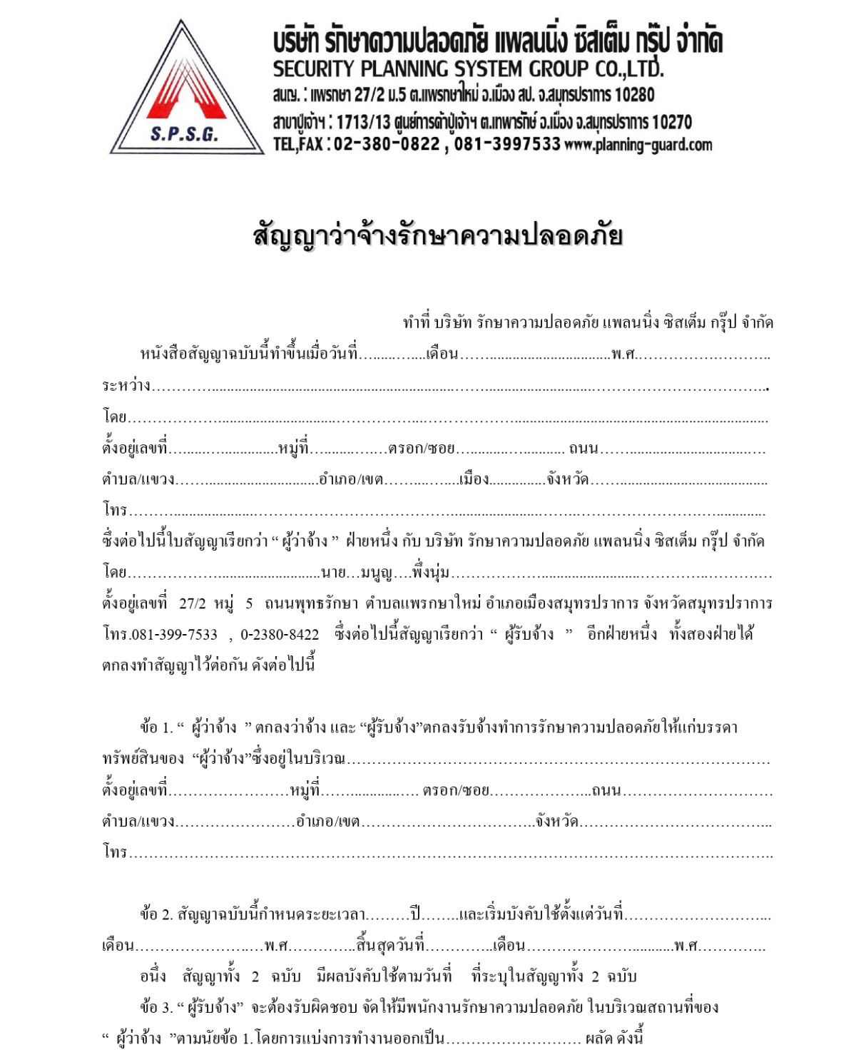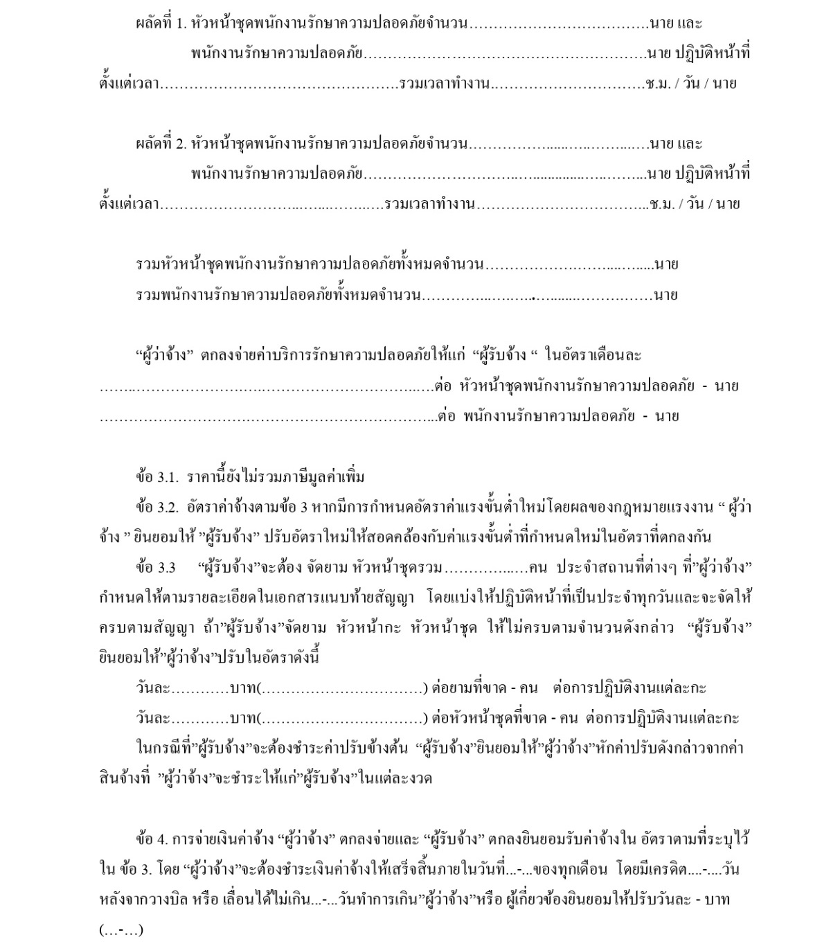ตัวอย่างสัญญาว่าจ้างรักษาความปลอดภัย